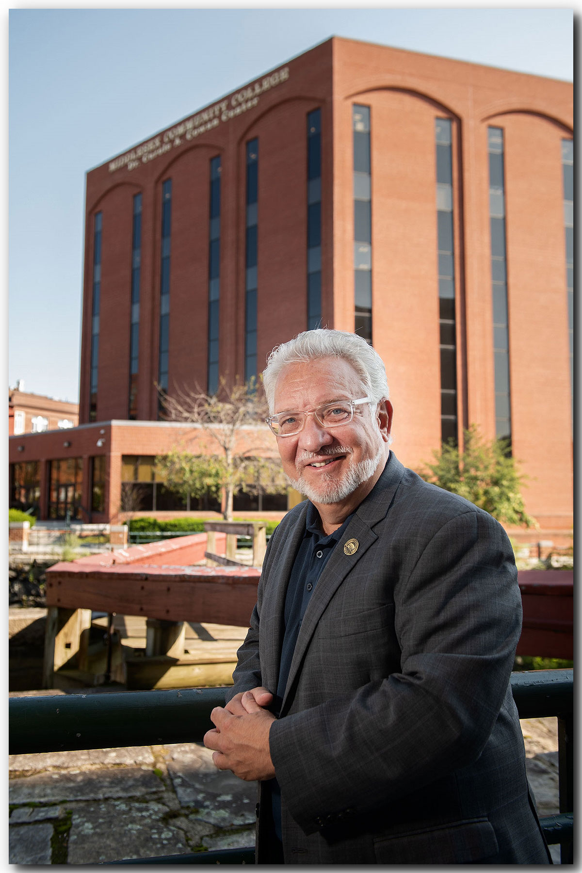 Middlesex Community College will be celebrating today the inaugural ceremony of their new President Philip Sisson. I had the opportunity to meet with Phil over the summer for a portrait shoot at the Lowell MA campus. We did several locations and as much as he hates being the center of attention he performed admirably. Special thanks to Patrick E. Cook, Executive Director of Government & Community Relations for a behind the scenes view while I did my setup with Phil. Look for the article “Gateway to a Better Life” by writer Sarah Comiskey in the Sept/Oct 2021 issue of Merrimack Valley Magazine.
