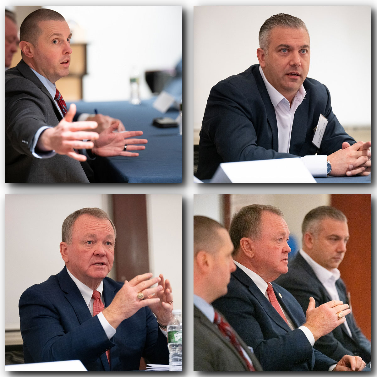 A panel discussion on the future of policing followed the breakfast, featuring Michael Burnett of Stratoscope Holdings and Lt. Matthew Barter of the Manchester Police Department, moderated by Professor Peter Cordella. The visit concluded with a student luncheon meetup and a special moment as they presented McDonnell with a signed Saint Anselm Men’s Rugby ball and jersey, celebrating his lasting connection to the Hilltop.